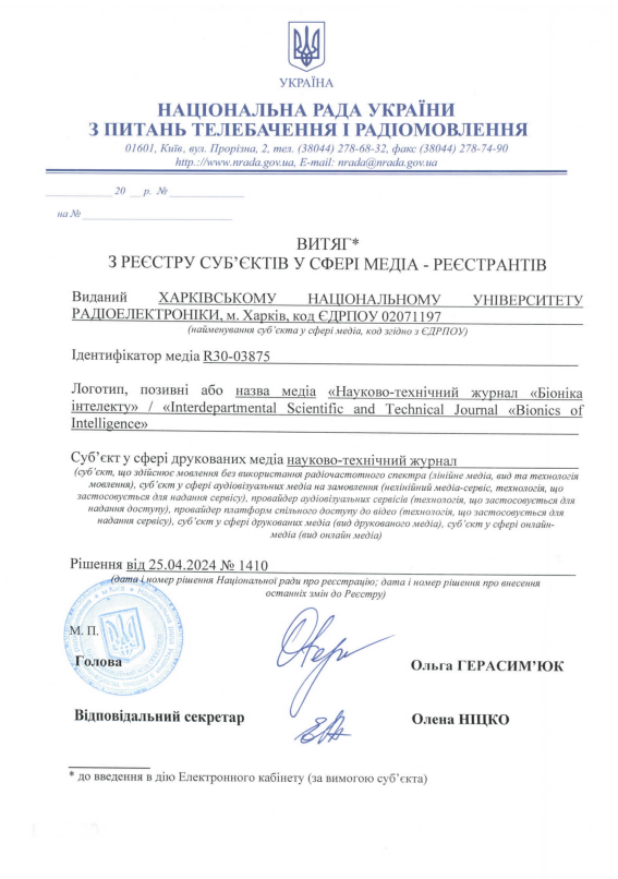 Тематична спрямованість журналу: висвітлення результатів наукових досліджень у галузі біоніки інтелекту та суміжних напрямів, пов’язаних із моделюванням інтелектуальних систем і процесів.